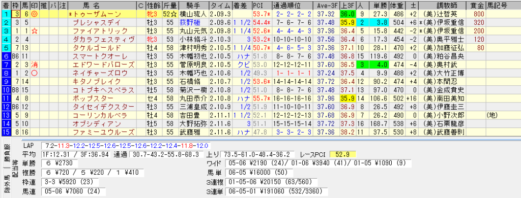 人気はなかったのですが「高確率でこの馬が好走する展開になりうるのでは?」が見事に的中したレースでした。