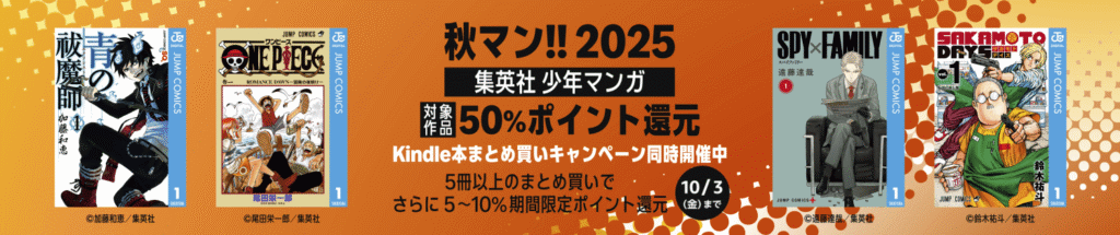 私も100冊以上の漫画をAmazonのキャンペーンを使って安く購入して、スキマ時間に読んで、漫画を楽しんでいます。